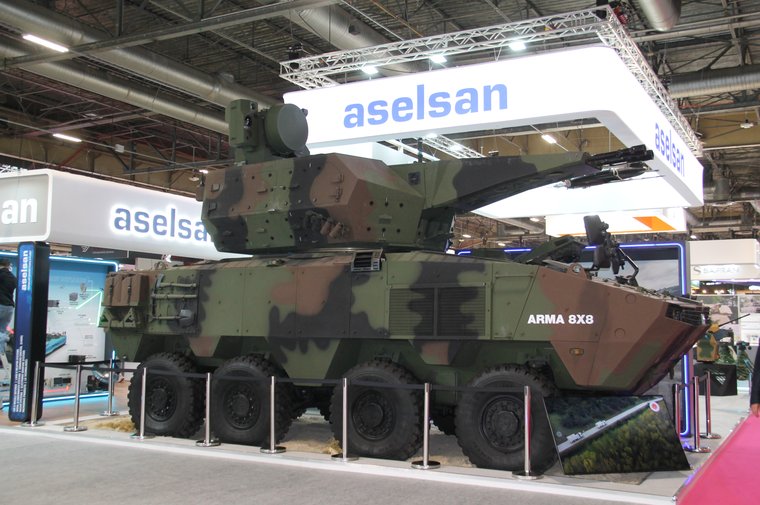 Aselsan's Korkut twin 35mm Air Defence Gun System (ADGS) integrated onto an Otokar Arma 8x8 IFV chassis is being shown for the first time at Eurosatory 2024.